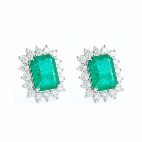 Cadermay Personalizar 4.5ct Cada Laboratório Crescido Emearld com Anel De Algodão Hidrotérmico Esmeralda Moissanite Anel De Luxo e Brinco